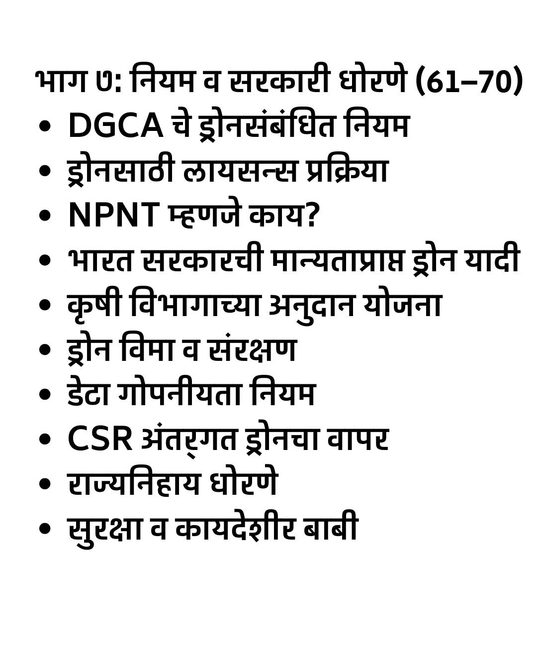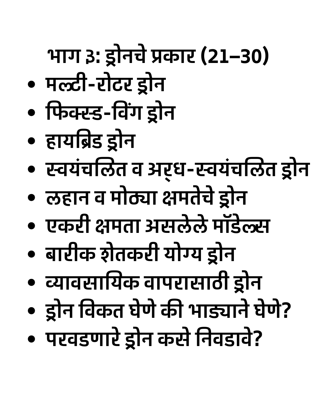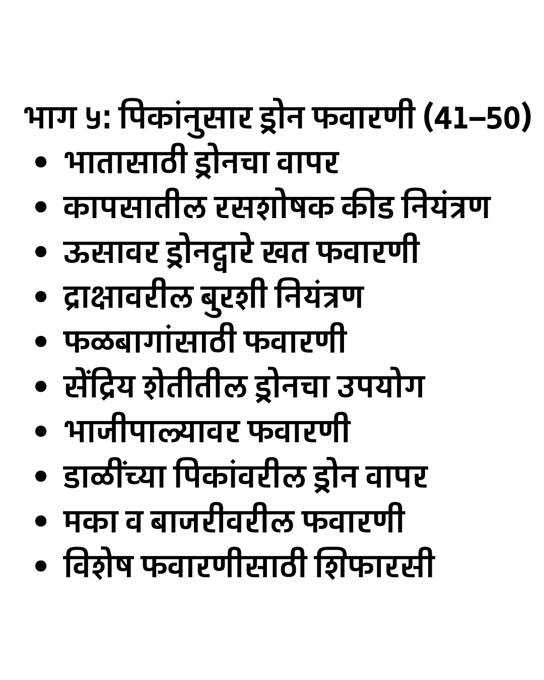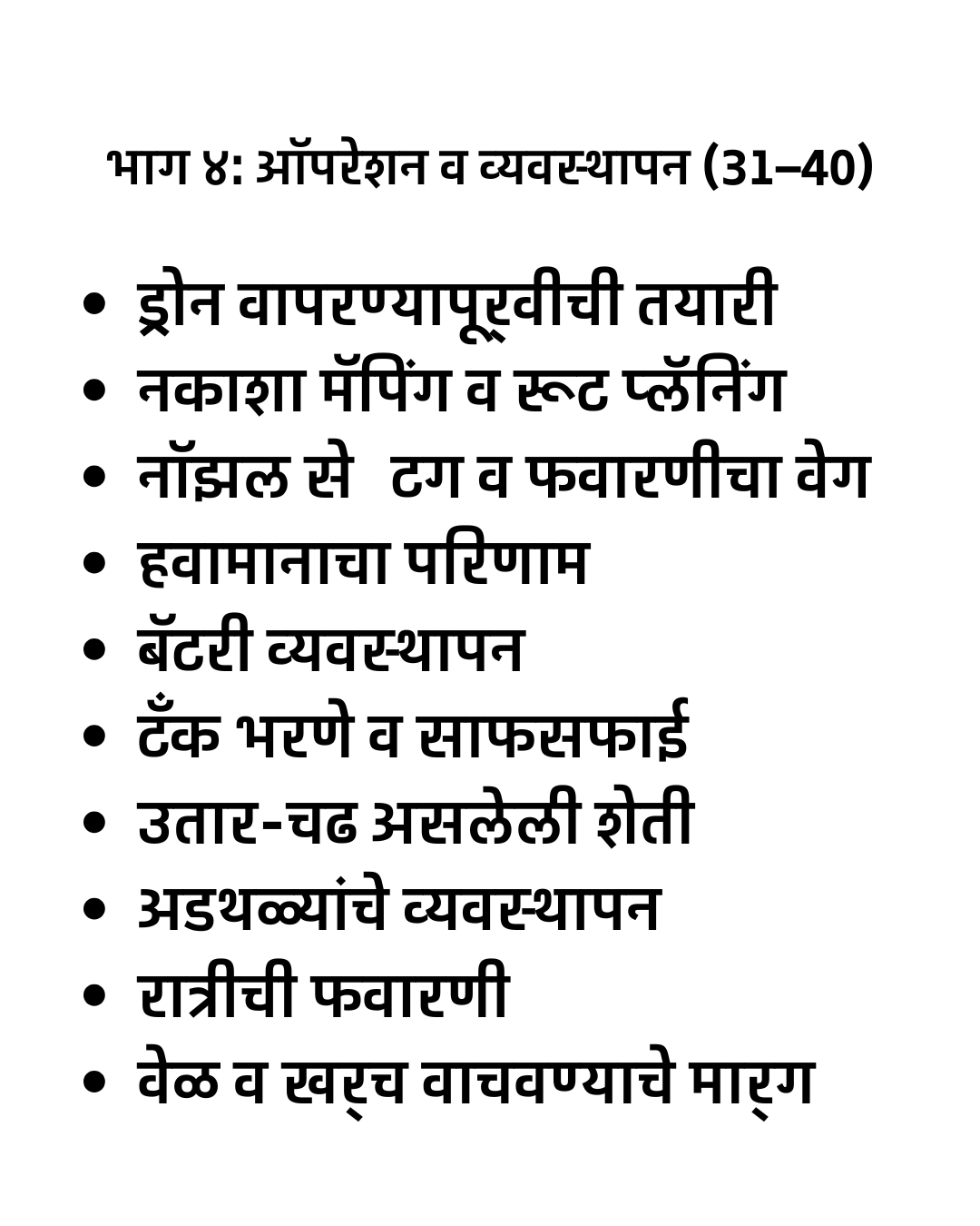 “Smart Drone Sheti – Ek Sampurn Margadarshak” हे मराठीत उपलब्ध असलेले सर्वात संपूर्ण आणि व्यवहार्य ड्रोन शेती मार्गदर्शक पुस्तक आहे. या पुस्तकात स्प्रे ड्रोन, सर्व्हे ड्रोन, NDVI मॅपिंग, अचूक शेती (Precision Farming), ड्रोन फवारणी तंत्र, ड्रोन सर्व्हे डेटा विश्लेषण, तसेच DGCA नियम व परवानग्या यांचे स्पष्ट आणि सोपे स्पष्टीकरण दिले आहे.